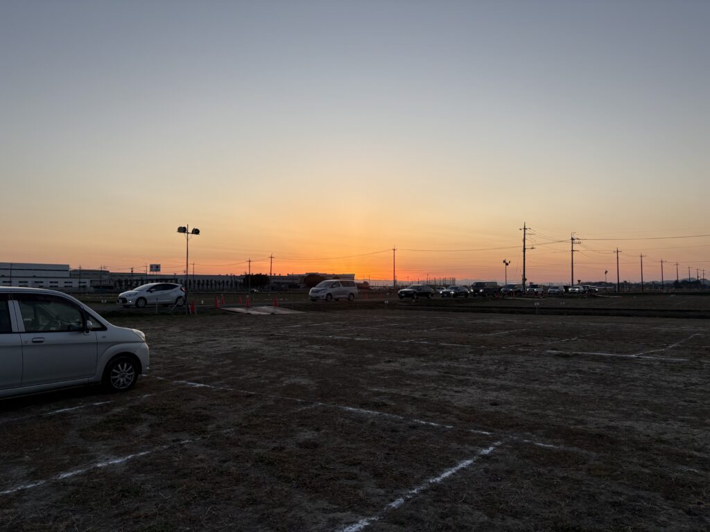スターバックスでコーヒーを飲んで、メインのあしかがフラワーパークへ。日の入り時刻に到着したが既に多くの車があり、入場ゲートまで大名行列のようになっていた。
