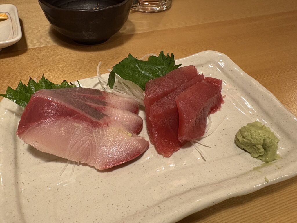 まぐろ刺(税込549円)やはまち刺(税込549円)などを食べた。その他、鶏の唐揚げやフライドポテトなど、舌が子どもの自分が楽しめるメニューが豊富にある。
