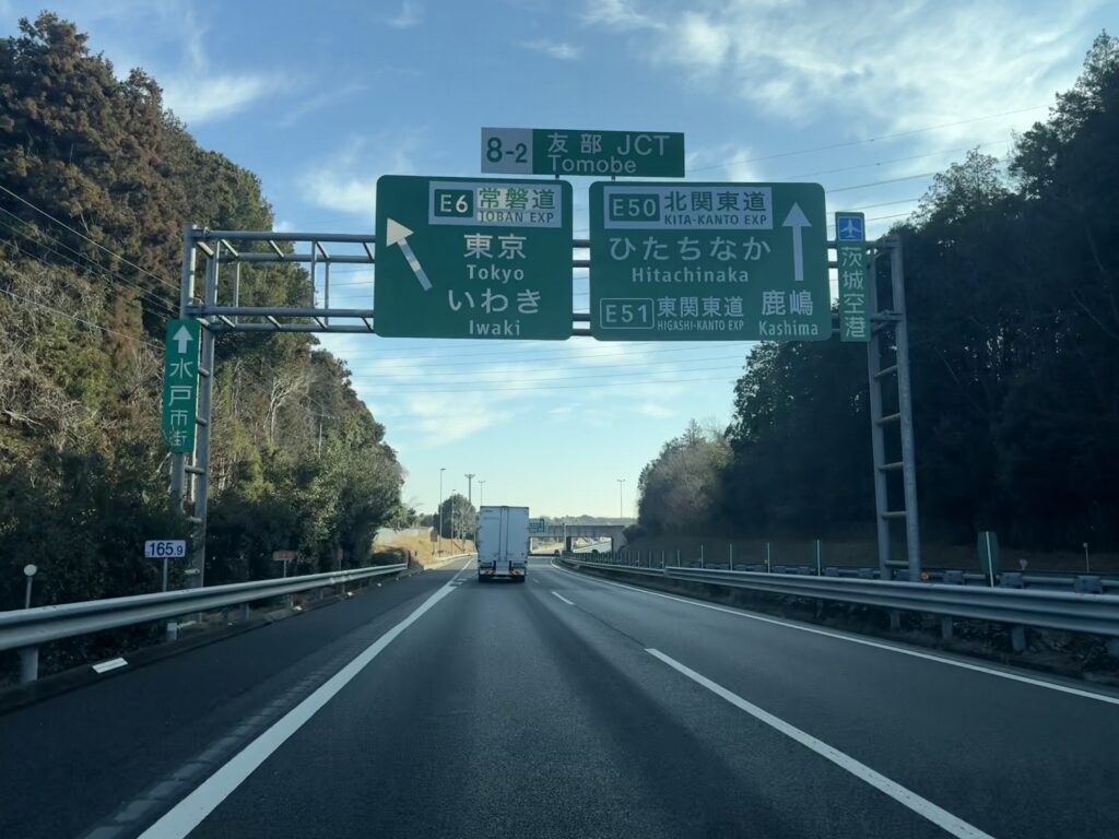 北関東自動車道から友部JCTを経由して常磐自動車道へ。冬は太陽が低いので直射日光が辛く夜になると目がチカチカする。