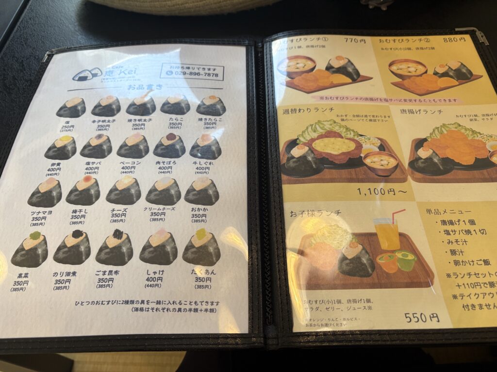 「おむすびランチ」などランチメニューが充実している。また、おにぎりや唐揚げを単品で注文することも可能だ。